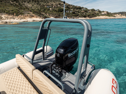 Son moteur Suzuki – hors-bord V6 300 cv avec double arbre à cames en tête, 24 soupapes – permet de disposer d’une motorisation adaptée avec un niveau sonore très bas. La capacité du réservoir d’essence, de 250 litres, vous offrira une bonne autonomie.