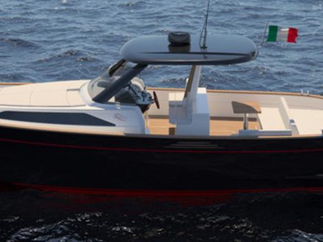 Cette nouvelle version du Gozzo 35 est équipée de trois moteurs de 300 cv qui lui confèrent les performances d'un véritable bateau de sport et une vitesse de pointe bien supérieure à 40 nœuds. Son ambition est de combiner les lignes typiques et le style intemporel du Sorrento Gozzo avec la sportivité et les performances supérieures d'un bateau de croisière rapide.