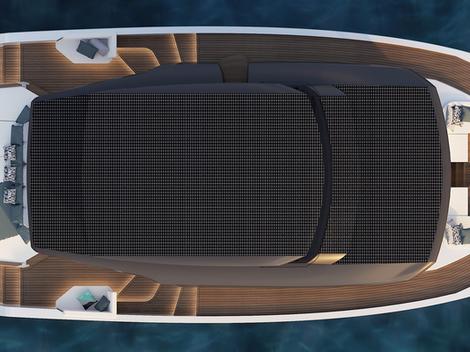 Pour le zéro émission, c’est une femme qui a montré l’exemple. Chloé Zaied, marin de profession, a créé la marque « Hynova Yachts » et conçoit le premier bateau de plaisance au monde à fonctionner à l’hydrogène électrique. Son dayboat de 12 mètres est muni de quatre bonbonnes de 110 litres d’hydrogène pressurisé à 350 bars, alimentant la pile REXH² qui produit 60 kW dans une puissance allant jusqu’à 600 volts, sans faire de bruit et en rejetant de l’eau. Plus récemment, c’est Alva Yachts, une marque allemande qui décline une gamme de voiliers monocoques et de catamarans moteurs de plus de 70 pieds. La toute jeune entreprise française Whisper-Yachts, qui vient de se créer avec le projet d’un motoryacht électrique-solaire sur la base d’un catamaran luxueux de 50 pieds, vient d’enregistrer trois commandes. Sa motorisation de 2 x 100 kW Torqeedo Deep Blue est alimentée par trois nouvelles batteries de 80 kW chacune soit 240 kW et ses 40 m² de panneaux solaires lui garantissent une autonomie illimitée à 5-7 nœuds.