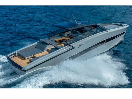 La gamme TT du chantier italien s’agrandit encore avec ce nouveau modèle de 12,30 mètres de long. Délaissant le positionnement tender de luxe, il s’inscrit dans la tendance day boat chic et luxueux, déjà intronisé avec le TT460. Motorisé de Volvo IPS, D4 ou D6 allant jusqu’à 440 cv, les performances sont au rendez-vous. La disposition du pont walkaround, poste de pilotage et cuisine centrale sous le T-top, bains de soleil avant et arrière ainsi qu’une table modulable, est assez habituelle dans le segment, mais le petit plus est le garage à annexe inédit dans cette taille. Le design, dû à Christian Grande, avec notamment cette fameuse étrave perce-vague et le souci du détail élégant distingue l’Invictus entre tous.
