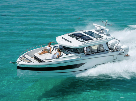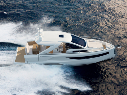 Le chantier vendéen présente une plus petite version longue de 11,83 mètres, de son day boat premium lancé l’année dernière avec le DB/43. Style, luxe, confort et ouverture maximum sur la mer caractérisent cette gamme qui fait le trait d’union entre les Jeanneau moteur boats et les Prestige Yachts. Un petit yacht open avec un pont à ouverture latérale correspondant aux codes modernes de la navigation estivale. Une belle cabine en pointe et une autre sous le cockpit, une salle de bain et un petit office autorisent le week-end à bord. La motorisation in-bord avec 2 x 320 cv Volvo D4 ou jusqu’à 2 x 400 cv en hors-bord est là pour procurer le plaisir convoité.
