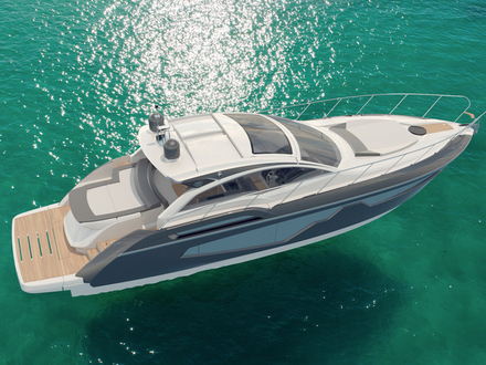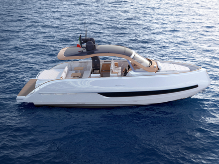 Cette année, le chantier italien continue le renouvellement de sa ligne de yachts avec le C48 conçu par Centrostiledesign. Cet Open sport cruiser de 15,72 mètres, qui remplace le C46, se distingue toujours par son style transalpin raffiné et sportif en ajoutant des améliorations techniques et de confort. La propulsion est confiée à des IPS Volpo 650 de 960 cv, les deux cabines VIP et un carré intérieur autorisent la croisière. Sur le pont l’ergonomie du cockpit est meilleure et la grande plateforme hydraulique donne un accès aisé à la baignade autant qu’elle permet la mise à l’eau d’une annexe de 2,85 mètres et d’un jet-ski, tous deux abrités dans le garage agrandi pour la circonstance.