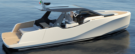 Avec Skyron, l’équipe de conception d’Italia Yachts a également conçu une coque capable de rendre la navigation ludique, sportive et sûre dans une plage de vitesse comprise entre 35 et 40 nœuds, avec des moteurs in-bord ou hors-bord.
