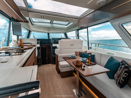 Les deux sièges de barre rembourrés avec traversin réglable sont désormais dotés d'un espace réfrigéré où vous pouvez commodément ranger une glacière, ainsi qu'un espace de rangement supplémentaire. Les dossiers orientés vers l'avant font désormais partie de l'ensemble des sièges de proue, ce qui améliore le confort des passagers, et le siège du tableau arrière a été retravaillé pour faciliter l'accès à la cale.