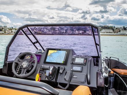 Elle est ordonnancée autour d’un GPS intégré et d’un lecteur de carte (micro SD) compatible avec la cartographie Navionics+ et Platinium+. Sur la cartographie, il est possible de superposer l’image radar ou encore, si présence sur le réseau d’un AIS, les cibles AIS/ MOB. Le calcul de route (autorouting) calcule un itinéraire, en tenant compte des données du bateau. Il suffit de les programmer (tirant d’eau, d’air, largeur, …). Le calcul de route prend en compte ces données ainsi que les informations portées sur la carte (bouées, zones interdites, etc…) et la hauteur d’eau. Cette dernière est calculée pour un coefficient de 120. Pour la sécurité et une meilleure interprétation de la route, elle est représentée en 3 couleurs : vert aucun risque, jaune risque potentiel, rouge danger élevé.