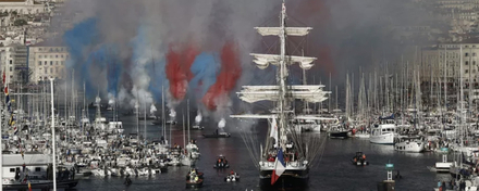 Cornemuses, sirènes, feux d’artifice, patrouille de France et plus de 100.000 personnes ont salué l’entrée du trois-mâts dans la rade de la cité phocéenne, à 79 jours de la cérémonie d'ouverture des Jeux de Paris (26 juillet - 11 août). Revivez cet évènement historique avec le Figaro.fr.