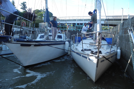 Le fait que l’écluse soit fermée décembre, janvier n’est pas la principale gêne car peu de plaisanciers naviguent à ces dates. Ce qui les handicape le plus ce sont les deux autres points : devoir prévenir 48 heures à l’avance (février, mars et novembre) avec des créneaux horaires réduits et les heures d’ouverture (avril à fin octobre) limitées avec une coupure à midi. Prévoir sa navigation 48 heures à l’avance c’est envisageable (en fonction de la météo) pour le jour de départ, c’est plus difficile pour le retour. Il faut savoir que lorsque l’on fait route vers l’estuaire, on peut, si l’écluse n’est pas ouverte, faire une halte au port du Lyvet dans l’autre sens il n’y a pas de ponton d’attente et peu d’eau devant l’écluse pour manoeuvrer donc c’est problématique.