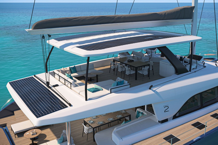 Le bimini et le roof du EIGHTY 2 sont équipés de panneaux solaires pour alimenter les différents équipements à bord. Astucieusement intégrés et associés à un parc à batterie Lithium "précisément étudié", ils permettent de maximiser l’utilisation des ressources renouvelables tout en prolongeant le temps de mouillage.