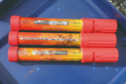 Lorsque l’on achète ces produits, par exemple 3 feux rouges à main, pour une navigation entre 2 et 6 milles d’un abri, on est loin de se douter que chaque année plus de 60 tonnes d’engins sont mis sur le marché dont le 1/3 (20 tonnes) seront périmés.