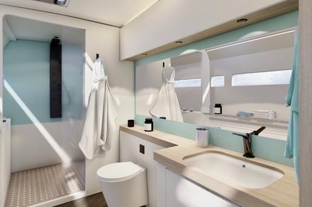 Mais la grande nouveauté du 46 est la possibilité de choisir une motorisation électrique à la place des classiques diesel 2 x 45 ou 2 x 57 CV. La charge des batteries (2 x 27 kWh) est gérée automatiquement selon les besoins grâce aux panneaux solaires, au groupe électrogène ou à l’hydrogénération.