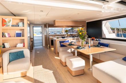 Enfin, Lagoon a réussi le tour de force de créer un espace cockpit - carré - cockpit avant totalement plat et sans aucune marche...