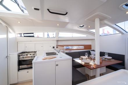Pour booster l’ensemble, le chantier n’a pas lésiné - il existe trois versions du 44, Easy - Océan - Performance - et toutes permettent au bateau de s’ébrouer au moindre souffle de vent.