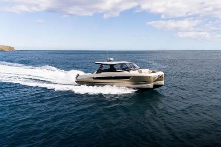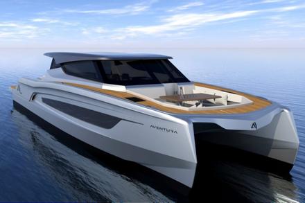 Le dernier-né de la gamme Aventura est un joli catamaran à moteur qui se donne comme objectif ambitieux de proposer le meilleur compromis pour profiter de sorties à la journée entre amis ou en famille ou de vraies croisières détentes de plusieurs jours. Pour réussir ce tour de force, le chantier a développé une toute nouvelle carène planante capable d’offrir les vitesses de pointes attendues pour un programme de sortie à la journée (ici plus de 35 noeuds) tout en restant confortable pour de plus longues navigations. Le choix des motorisations va dépendre des besoins du propriétaires avec des versions inboard, hors-bord diesel ou électrique.