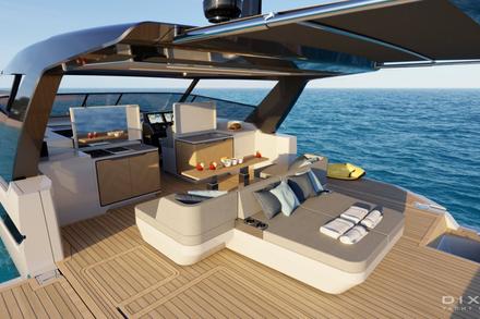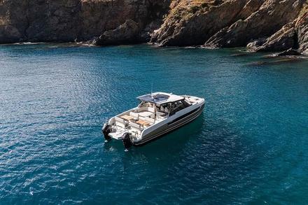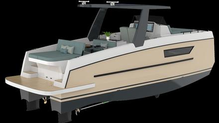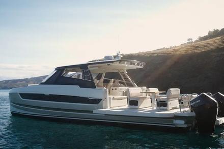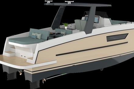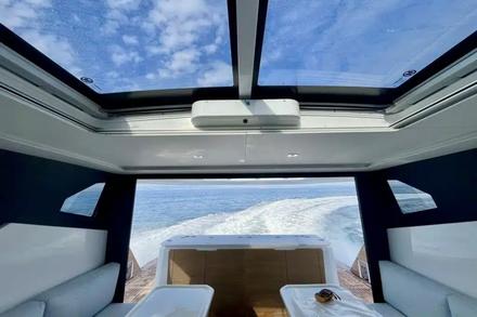 Le cockpit peut être entièrement fermé pour profiter de la climatisation ou pour se protéger des intempéries. Enfin, une mention spéciale pour le pont arrière avec une belle banquette convertible et les pavois basculants. Un bateau qui peut être motorisé en version hors-bord ou inboard, diesel ou électrique.