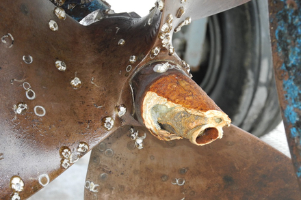 Une anode est conçue pour se désagréger dans le temps. Si elle ne s’use pas c’est aussi inquiétant que si elle s’use rapidement. Dans le premier cas, c’est un équipement du bateau qui joue le rôle d’anode (vanne, hélice, arbre, embase, etc.). Tandis que le deuxième cas est généralement synonyme d’une fuite électrique. Il est difficile de quantifier une usure normale. Elle dépend du bateau, de son environnement et du port. Sur un bateau qui reste continuellement à flot, on peut estimer que les anodes doivent être suffisamment attaquées (60 à 70%) pour être changées annuellement. Si l’usure est anormale (rapide ou pas d’usure), il est important de vérifier les éléments métalliques immergés (hélice, arbre, embase, vannes, ...). Par exemple, une hélice en bronze qui prend une teinte rougeâtre et qui donne un son cristallin lorsque l’on tape dessus avec un objet métallique, est synonyme de corrosion, elle devient dangereuse et peut casser rapidement. Il en est de même pour les vannes et passe-coques, là, en cas de cassure, c’est la voie d’eau assurée. Ces problèmes sont bien souvent synonymes de fuite électrique. Il y a lieu de s’en inquiéter rapidement.