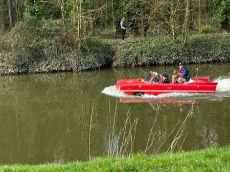 La véritable auto amphibie roule sur terre et navigue sur l’eau propulsée par le même moteur. La seule qui ait vraiment fonctionné est celle mise au point par l’industriel allemand Hans Trippel dans les années 60. L’Amphicar était construite à sur une base de Triumph Herald, voiture anglaise dont le moteur 1147 CC était le plus moderne de l’époque. L’Amphicar est annoncée avec des performances alléchantes : 112 km/h sur route et 7 nœuds sur l’eau. Une authentique auto et un petit bateau pour se promener sur des eaux calmes. Sur terre, l’Amphicar se révèle dangereuse au-delà de 70 km/h. La garde au sol est si élevée que la tenue de route est aléatoire. Sur l’eau, c’est un problème de direction qui rend les manœuvres imprécises : en effet, ce sont les roues avant qui font office de gouvernail… Autant dire qu’il faut tellement anticiper au moindre courant et à chaque souffle de brise, que les heureux propriétaires de l’Amphicar n’osent sortir leur joli cabriolet que sur les plans d’eau douce et par calme plat. Quand même : deux Amphicars ont traversé la Manche de Douvres à Calais le 16 septembre 1962. La légende raconte qu’elles ont affronté des vagues de six mètres. Cette légende n’est pas plus vraie que les autres. Il y avait une longue houle d’ouest certes, mais pas de vagues et peu de vent. Peu de courant aussi : la traversée s’est faite en mortes-eaux, quelques jours après les marées d’équinoxe. Le même jour, le président John Kennedy annonçait la détermination américaine de conquérir la lune. Malgré la Guerre Froide, c’était l’époque de toutes les ambitions...