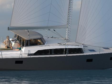 À l’intérieur, l’aménagement est optimisé pour les longues navigations. La cabine propriétaire, située à l’avant, dispose d’un lit décentré sur bâbord, de nombreux rangements et d’un cabinet de toilette avec douche séparée. À l’arrière, deux cabines sont prévues, dont l’une avec un lit modulable en double ou en superposé. Une seconde salle d’eau est aménagée à tribord.