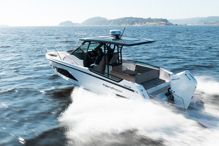 La version Enduro du Nordkapp 830 propose sur une coque de 8,30 mètres de longueur et 2,92 mètres de largeur, une console centrale, un beau cockpit convertible en immense bain de soleil, une kitchenette, un espace avant convivial et... une vraie cabine dotée d’un grand lit et d’un cabinet de toilette. De quoi profiter pleinement de belles navigations à la journée, mais aussi de se laisser séduire par une escapade d’un week-end entre amis, avec la possibilité de passer la nuit à bord en toute sérénité.