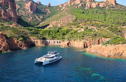 Fountaine Pajot met ici l’accent sur l’autonomie et la sérénité à bord. Les 7000 W de panneaux solaires, couplés à un générateur et un dessalinisateur de 220 L/h, garantissent une énergie continue pour tous les usages : climatisation, spa, multimédia, cuisine, éclairage. L’ensemble se fait dans un silence rare à bord d’un yacht de cette taille, permettant de vivre à son propre rythme, loin des contraintes techniques.