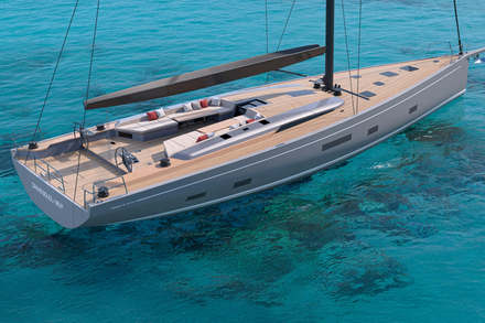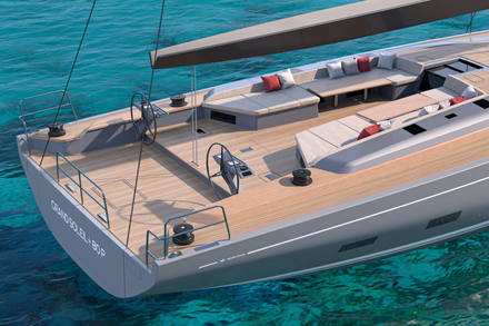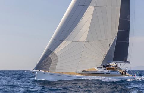 Le cockpit, entièrement repensé, allie ergonomie et convivialité. Les manœuvres sont facilitées pour l’équipage, tandis que les invités profitent de banquettes allongées, de grands bains de soleil et d’un bimini avant optionnel pour les moments de détente. Sous la ligne de flottaison, la quille fixe de 3,95 m et le safran profond avancé offrent une précision de barre exemplaire. Les plus exigeants pourront opter pour une configuration à double safran pour un contrôle encore plus fin dans les conditions soutenues.