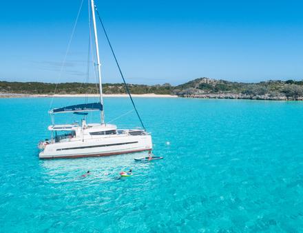 Catamarans avec 2 pointes avant incluant lit, toilettes et douche (ex. Bali 5.4)