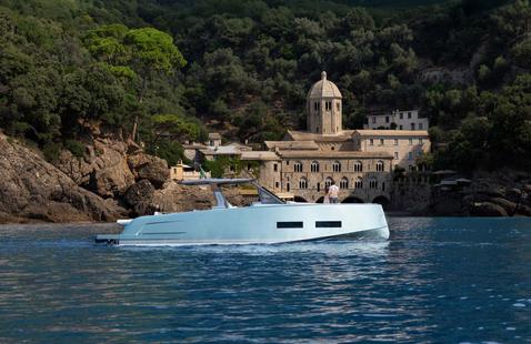 Chaque zone du bateau, du bain de soleil avant à la grande lounge arrière, a été pensée pour les moments partagés en navigation ou au mouillage. Le résultat : une embarcation qui sait autant accueillir que stimuler, véritable « supercar de la mer ».