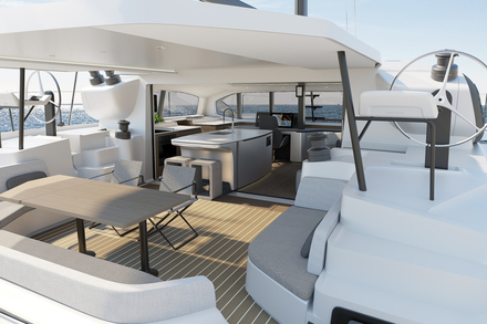 Ses volumes habitables exceptionnels cockpit XXL sécurisé, carré lumineux, grande cabine propriétaire, vitrages panoramiques, rangements généreux s’associent à une modularité unique sur le marché, grâce au double My Free Space, offrant jusqu’à douze configurations différentes selon les programmes de navigation.