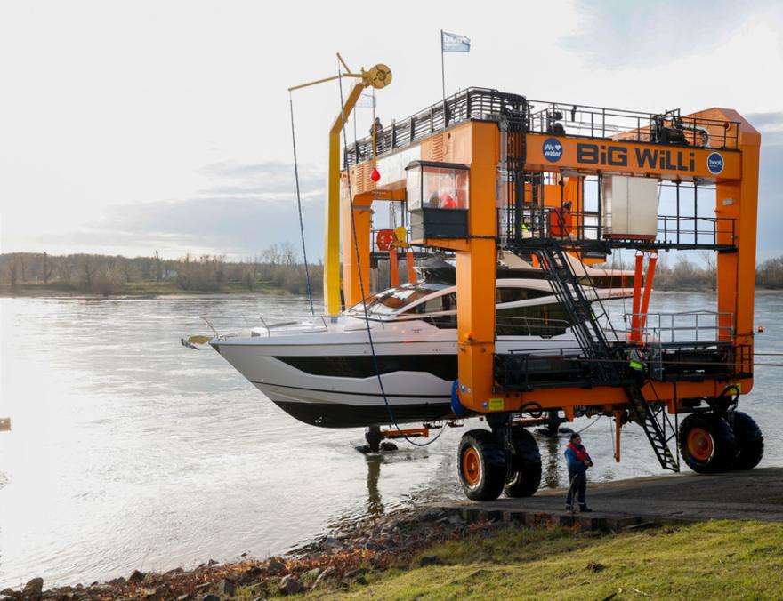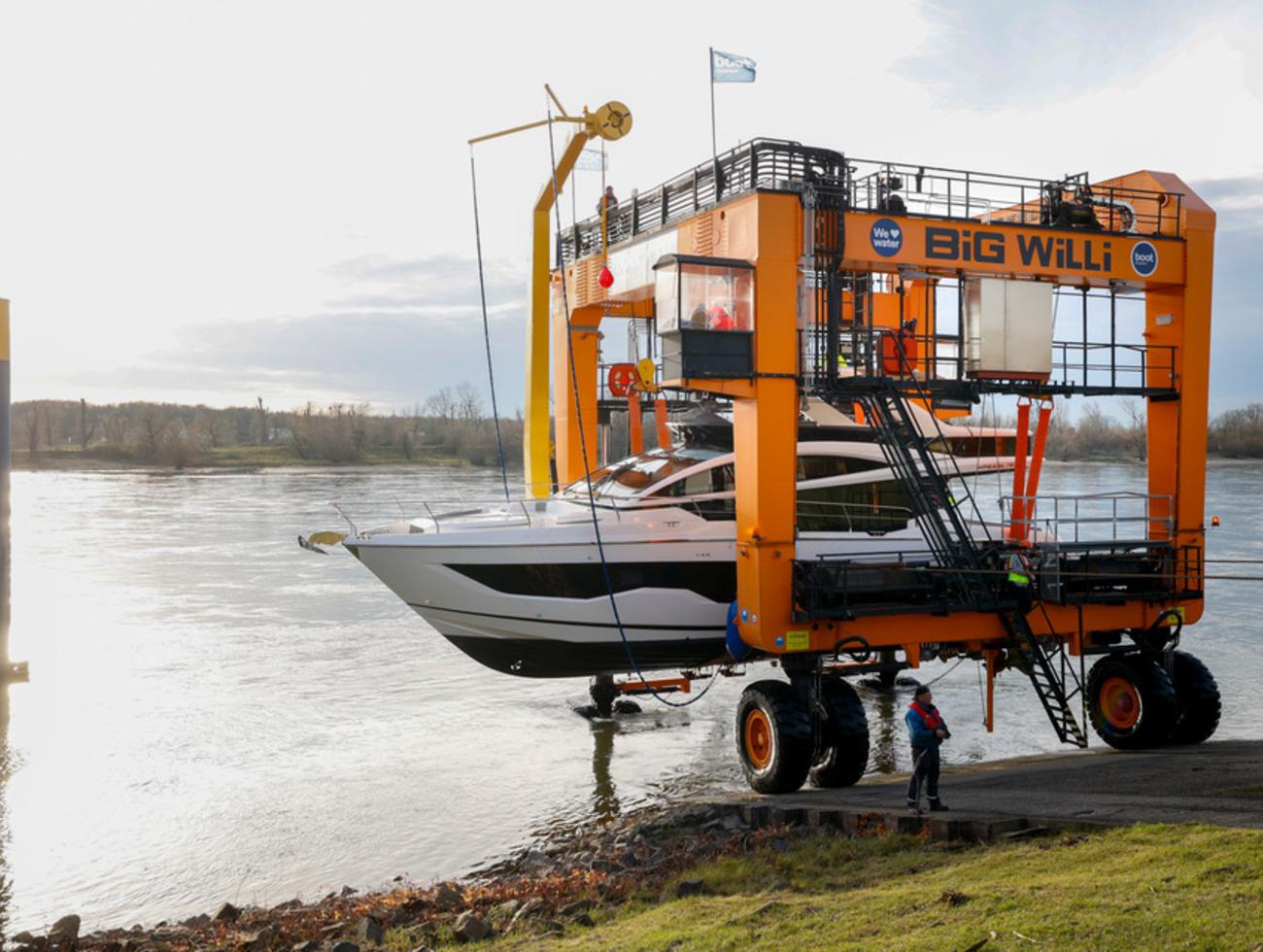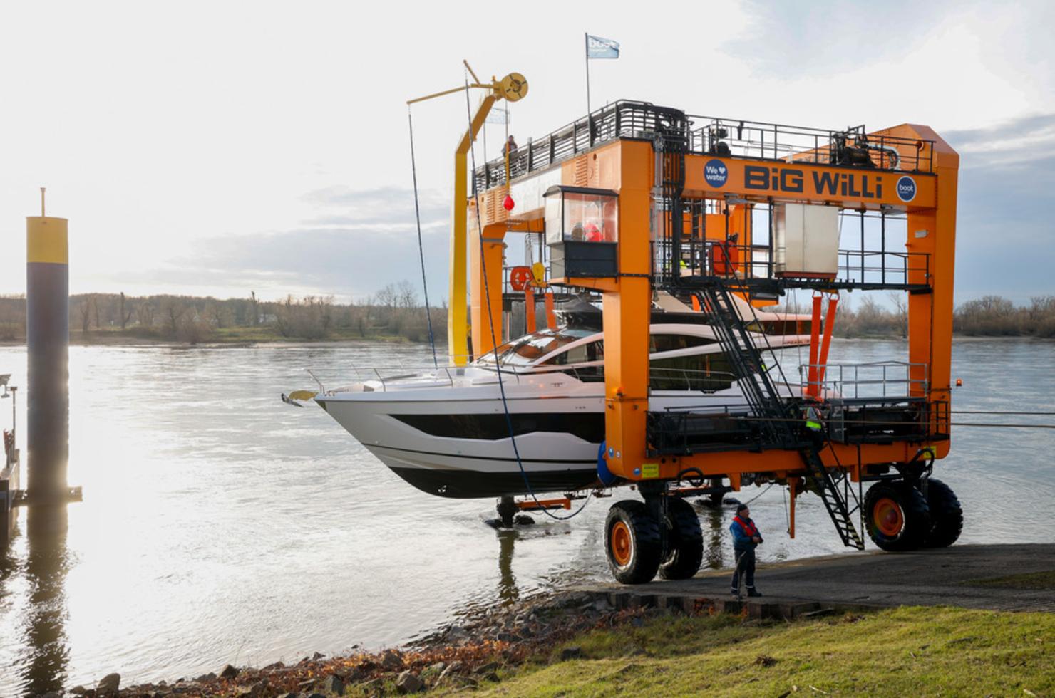 Le 16 décembre marque une étape clé dans la mise en place de l’édition 2026. Comme chaque année à la même période, la grue fluviale « Big Willi » a pris position sur la rive du Rhin. En service depuis 45 ans pour le salon, cette machine impressionnante de 84 tonnes, haute de 12,7 mètres, est chargée de sortir les premiers yachts destinés à être exposés à Düsseldorf.