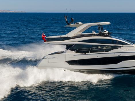 Comme sur l’ensemble de la gamme, les lignes extérieures et l’architecture navale sont signées Bill Dixon, tandis que les intérieurs portent la marque de Kelly Hoppen CBE. Plusieurs ambiances décoratives sont proposées, permettant à chaque propriétaire de personnaliser son yacht selon ses préférences. La motorisation Volvo IPS assure quant à elle des performances équilibrées, une consommation maîtrisée et une manœuvrabilité intuitive, particulièrement appréciable lors des évolutions en marina.