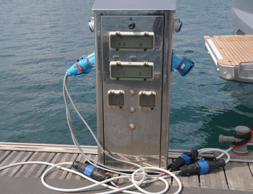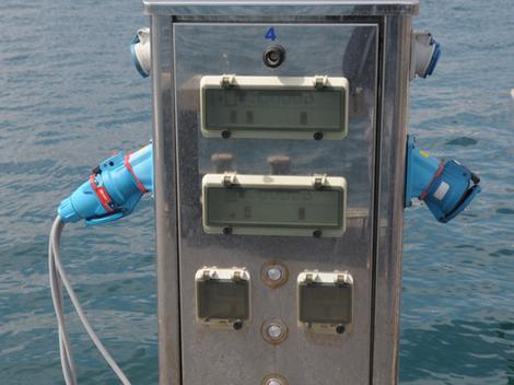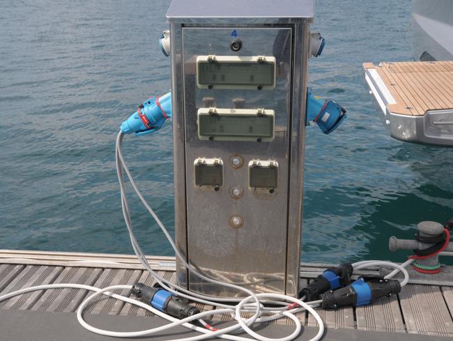 Brancher en premier le prolongateur à la prise du bateau, ensuite à la borne de quai. Pour débrancher faire l’inverse, d’abord la borne puis le bateau.