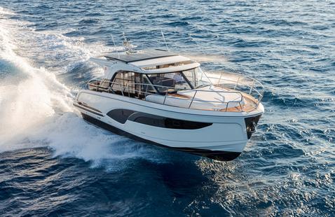 Depuis 1968, les Coupés constituent l’ADN de la marque suédoise. Des modèles comme les 320, 365 ou 405 ont façonné une approche très nordique de la navigation : protéger l’équipage quand les conditions l’exigent, ouvrir largement le bateau dès que la météo le permet. Le 495 Coupé s’inscrit naturellement dans cette lignée. Développé à partir de la plateforme du 495, il partage la même carène récompensée que la version Flybridge, mais en retire volontairement le pont supérieur pour retrouver une silhouette plus basse, plus rationnelle, et surtout mieux adaptée à une utilisation au long cours.