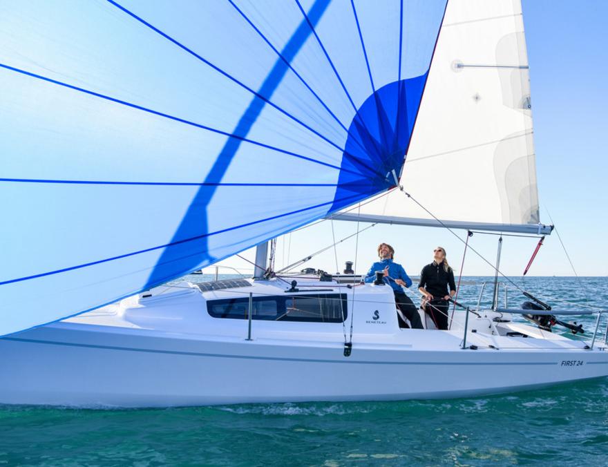 Dans un registre plus habitable, le First 24 pousse le concept plus loin. Il s’adresse à des équipages souhaitant de vraies micro croisières, sans renoncer à la mobilité. Sa largeur contenue et son tirant d’eau réduit quille relevée en font un bateau capable de changer de bassin sans lourdeur logistique, tout en offrant une protection et un volume intérieur adaptés à des sorties de plusieurs jours.