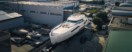 Créé il y a quelques années par Tilli Antonelli, ex patron-fondateur de Pershing, une des marques du Groupe Ferretti, Wider Yachts est un chantier spécialisé dans les yachts et autres day-boats installé à Ancône en Italie. Après un 150 pieds qui aura marqué l'histoire du yachting, le constructeur vient de mettre à l'eau son projet "Cecilia". Fruit d'une collaboration entre l'équipe Wider et le designer italien Fulvio De Simoni, le Wider 165 est construit entièrement en aluminium. Il sera destiné à un propriétaire amoureux de grandes croisières et d'aventures, puisqu'il pourra accueillir de nombreux jouets nautiques, aussi bien à l'intérieur qu'à l'extérieur. Il possède également un héliport situé à l'avant du pont principal. Sur ce pont se trouvent également de nombreuses assises à proximité d'un énorme jacuzzi. Sur le pont supérieur, un vaste espace, avec de nouveau un jacuzzi et des bains de soleil, domine le motor-yacht avec une vue à 360° sur l'océan. A l'arrière du pont supérieur, on trouvera une plate-forme de bain avec un accès direct à la mer.