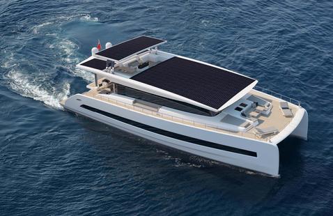 L'intérieur est totalement personnalisable, aussi bien les deux ponts et le toit et la coque. On retrouve sur le pont principal un salon de 72 m2, une cuisine équipée, une salle de bain, une terrasse avec cuisine extérieure de 77 m2. Les quatre chambres se trouvent sur le pont supérieur, dont la principale avec jacuzzi. Quant aux panneaux solaires, ils recouvrent la totalité du toit, à savoir 200 m2 environ.