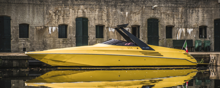 Fabriqué en 1995, ce Riva très exclusif et rapide est le 36ème des 37 exemplaires construits, bénéficiant des améliorations esthétiques et mécaniques de la version finale du modèle, née d'un accord entre le chantier italien et Ferrari en 1988. Avec une vitesse de pointe de 54 nœuds, il était à l'origine utilisé à des fins de démonstration, restant au chantier naval Riva à Sarnico jusqu'en 1998. Magnifiquement conservé, n'ayant été utilisé qu'en eau douce, le bateau est vendu avec un dossier historique contenant des dessins originaux de Riva et des photographies d'époque. Estimation : entre 80 000 et 100 000 euros.