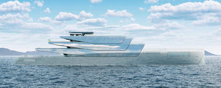 Le dossier de presse, l’affirme, ce yacht futuriste a été conçu sur une plage de l'île de Koufonissi, au cœur des Cyclades, en Grèce. Pourtant, ne vous fiez pas à son patronyme, le natif de New-York Jozeph Forakis est établi à Milan, capitale du design. Si le nom ne vous est pas familier, c’est que lorsque le designer inspiré ne révolutionne pas le style de la grande plaisance, il réinvente la montre, le luminaire, le téléphone mobile, sans oublier bien sûr des meubles. Mais en voyant un nuage flotter au-dessus de la mer, il a eu cette envie d’«invisibilité » poussée jusqu’à imaginer un yacht zéro émission. Invisible donc à la fois par son design, mais aussi par son impact environnemental.