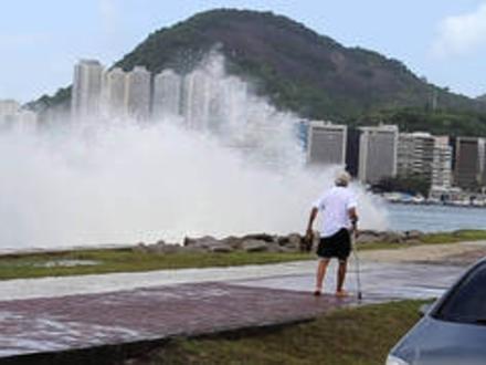 Et puis il y a la famille de la houle de provenance lointaine. Celle adulée par les surfeurs. Cette vague là est une voyageuse. Elle s’échappe d’une tempête, ou en tout cas d’un vent assez fort pour lui avoir donné l’énergie nécessaire à son développement et à sa propagation jusqu’à nos côtes. Celles qui arrivent sur le littoral atlantique de la France métropolitaine sont nées au sud d’une profonde dépression qui a sévi au milieu de l’océan. Une tempête au sud de l’Islande engendre facilement des vagues de 8 m de hauteur et 200m de longueur qui se succèdent toutes les 10 secondes. La vitesse de la vague est proportionnelle à sa taille. Plus elle est puissante, plus vite elle avance. Il se produit alors un système de filtre, les plus fortes arriveront les premières sur nos côtes sans avoir perdu trop d’énergie puisque le voyage a été rapide, les moyennes arriveront ensuite, bien diminuées par un long voyage, les plus faibles, donc les plus lentes, n’arriveront jamais… épuisées avant l’atterrissage.