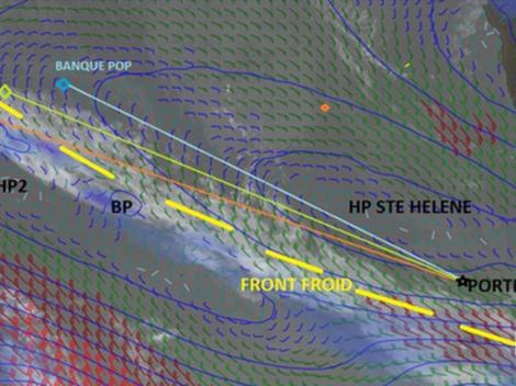 On voit bien que dans cette zone le vent est très faible et tourne dans tous les sens. C’est cette zone de transition que doivent gérer les concurrents.