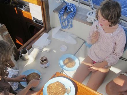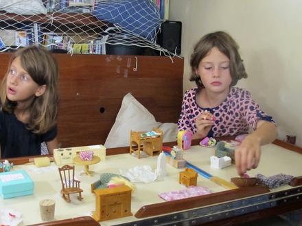 Je pensais avant de partir que l’ennui serait le pire ennemi des filles sur le bateau. Imaginez des enfants trois semaines sans pouvoir courir et sauter partout. C’est pourtant sous-estimer leur pouvoir d’imagination. La preuve, nous avons été soumis pendant dix-huit jours par Zéphyr et Looli au supplice des « pollypockets », des poupées miniatures devenues chaque jour les héroïnes de leurs mises en scène complexes. Les aventures interminables des figurines en plastique (remplacées occasionnellement par des peluches) étaient influencées par le quotidien à bord : état de la mer, lectures, films, leçons d’école. Elles ont ainsi pris le thé avec la Reine d’Angleterre, ont été déportées en camp de travail par Hitler (cours d’histoire-géo de CM2), ont été transportées dans le monde merveilleux de Miyazaki. Elles sont tombées mille fois amoureuses d’Errol Flynn (irrésistible dans Captain Blood et The Sea Hawk), ont survécu aux tempêtes, à la soif et la faim ; elles ont subi le joug de parents injustes et tortionnaires, mais ont été gavées de bonbons imaginaires.