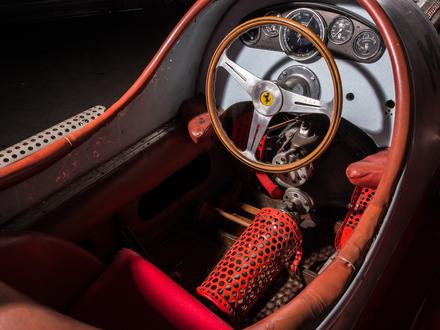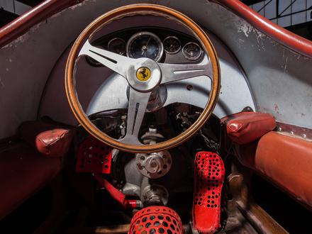 Côté motorisation, ce racer n’a pas opté pour un V12 propice aux records mais pour un 4 cylindres Ferrari et 2,8 litres de cylindrée. « Le dossier Ferrari d'origine indique que ce moteur fut monté à partir d'un bloc de 735. Sa puissance au banc était de 223 ch. à 6000 t/mn » nous explique Artcurial.