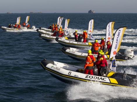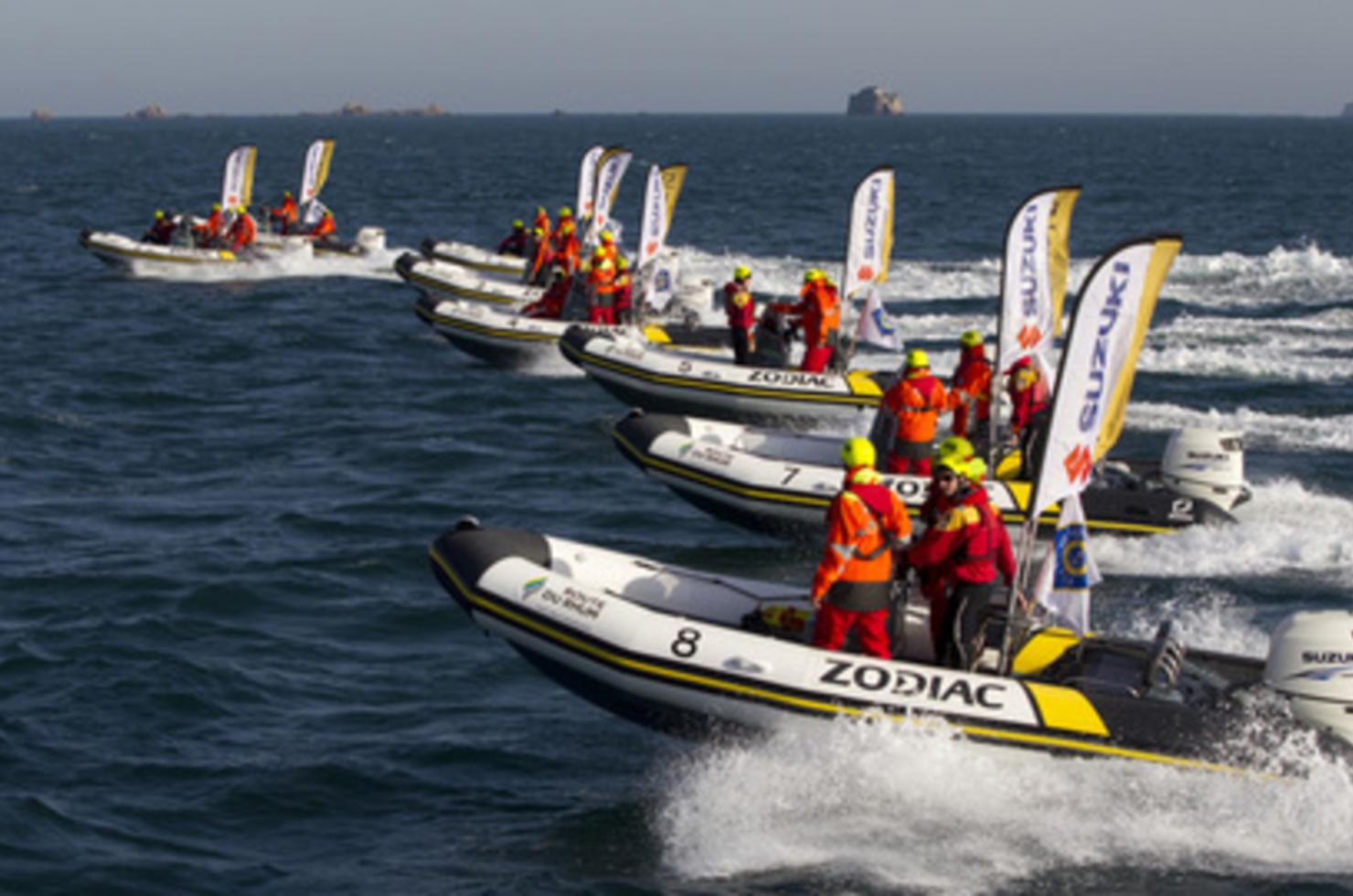 C’est le cas de Zodiac, leader mondial du bateau pneumatique, qui s’est associé pour la deuxième édition consécutive à l’organisation de la Route du Rhum - Destination Guadeloupe en tant que fournisseur officiel. Pour cette occasion unique, la célèbre marque tricolore a créée une série exclusive de dix-sept semi-rigides Pro Open 650 et quatre modèles Pro 750. Les embarcations ont été utilisées avec succès par l’équipe d’organisation de Pen Duick, la SNSM et la Société Nautique de la Baie de Saint-Malo (SNBSM) notamment pour sécuriser la zone de départ. En partenariat avec Suzuki Marine (également partenaire officiel de l’événement), les Pro Open 650 sont équipés de moteurs hors-bord 150 ch TGX blancs. Ils sont livrés clés en main avec une remorque Nautilus, un combiné GPS et un équipement de sécurité. Du côté des Pro 750, on retrouve les mêmes caractéristiques avec, comme unique changement, un moteur Suzuki 250 ch APX et un combiné GPS plus complet. Dans les deux cas, les flotteurs des Zodiac arborent une décoration spécifique « Route du Rhum – Destination Guadeloupe ». De vrais “collector” qui sont déjà partis comme des petits pains car, sauf désistement, « la plupart des modèles Route du Rhum auront été vendus avant le salon nautique par les concessionnaires » prévient Xavier Caron, responsable commercial France de la marque Zodiac.