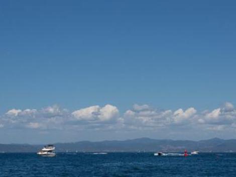 Mais l’humidité joue un rôle primordial aussi. Parce que en s’élevant une particule d’air humide se refroidit, se refroidissant elle se condense (formation nuageuse), se condensant elle dégage de la chaleur (au contraire de l’évaporation qui absorbe de la chaleur), se réchauffant elle s’élève, s’élevant elle se refroidit…. c’est ça l’instabilité ! Une bande nuageuse s’installe alors le long de la côte. Vu du large c’est magnifique, vu d’un satellite, encore plus. Petit cumulus peut devenir grand. Par beau temps cette bande de nuages qui marque son territoire est un vrai révélateur de brise. Attention tout de même à la déception, un beau temps anticyclonique trop sec empêchera le déclenchement de la brise. Le charme de l’anticyclone a vraiment ses limites.