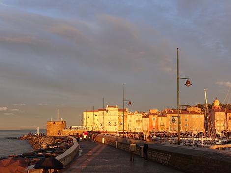 Maupassant fut une des premières personnalités connue à fréquenter Saint-Tropez, alors village de pêcheurs. Il résidait à bord de son yacht, le Bel-Ami. De nombreux peintres comme Paul Signac représentèrent le port dans leurs œuvres. Des artistes comme Brigitte Bardot, Barclay, ainsi que Louis de Funès et sa série de films des gendarmes à Saint-Tropez, contribuèrent à l’engouement pour le village. Ses maisons rose, orange et ocre, ses bateaux de luxe tranquillement amarrés au port et sa vie nocturne attirent toujours autant de monde. Également célèbres, les plages de sable fin à l’image de la plage de Tahiti, s’étendent sur une longueur de 10 km. Le climat méditerranéen assure à la région des étés chauds et des hivers doux et humides. Lors d’une soirée orageuse, le port et le village ont été baignés d’une lumière incroyable et encadrés d’un arc-en-ciel extraordinaire.