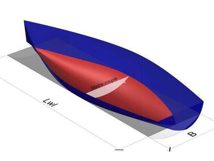 Selon le fameux principe découvert par Archimède dans sa baignoire, et selon lequel, "tout corps plongé dans l'eau en ressort mouillé", ou sa version scientifique "tout corps plongé dans un liquide reçoit une poussée équivalente à la masse de liquide déplacé", nous allons devoir donner à la carène un volume équivalent à un déplacement d'eau, lui même équivalent à la masse estimée du navire.