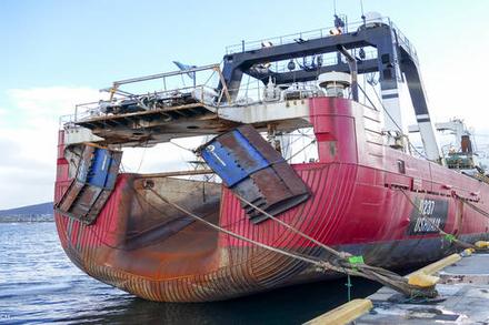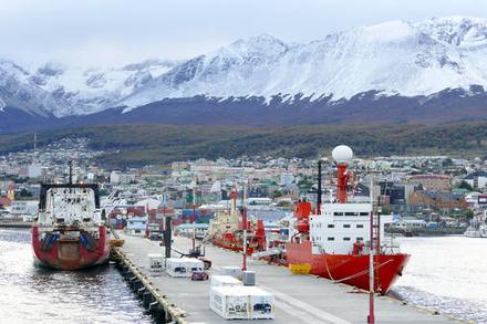 De grands chalutiers argentins faisant campagne de pêche à la morue ou au merlu dans les parages des Îles Malouines, et de l’ile de la Géorgie du Sud, ont pour port d’attache Ushuaïa.