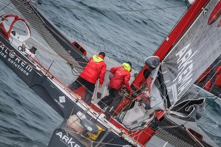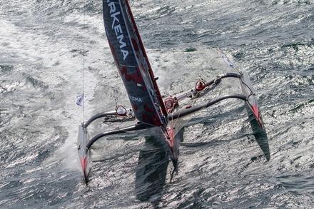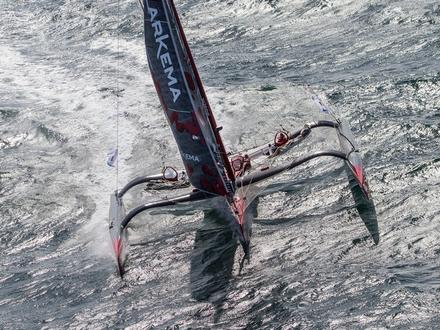 Même si les logiciels de routage, explorant une multitude de route rejoignant un point de départ à un point d’arrivée afin de sélectionner la plus rapide, sont très efficaces en trouvant les vents les plus favorables, il faut bien admettre que l’état de la mer peut dégrader considérablement les performances normales d’un bateau aussi léger qu’un multi50. Le beau plan de route établi sur une chronologie des vents peut alors s’avérer totalement faux. On doit donc bien prévoir l’état de la mer et ses effets dévastateurs sur les polaires. La polaire d’un voilier est son potentiel de vitesse en fonction de la vitesse du vent et de l’angle que fait celui-ci avec le cap donné au bateau. Et pour que ce soit plus amusant, comme le bateau se déplace, il crée un vent relatif qui se cumule avec le vent réel. C’est ce qu’on appelle le vent apparent, qui peut être plus fort si l’on va face au vent, moins fort si l’on va dos au vent. Dans de bonnes conditions, un bateau de course peut aller plus vite que le vent réel… en créant son propre vent.