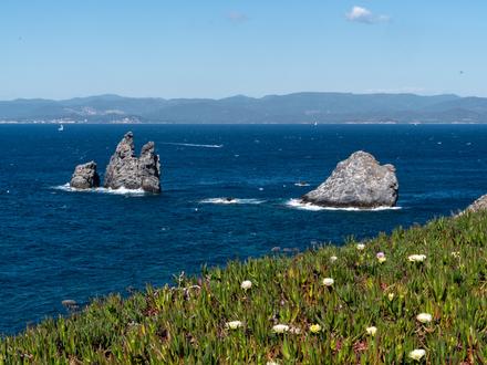 Les plaines où s’étirent les vignobles repris par des Maisons prestigieuses, Chanel ou la Fondation Carmignac offrent des paysages aux couleurs contrastées et vives : ocre et vert vif avec la possibilité d’apercevoir des faisans majestueux, surtout hors des périodes estivales, lorsque l’île est quasiment déserte et sauvage.
