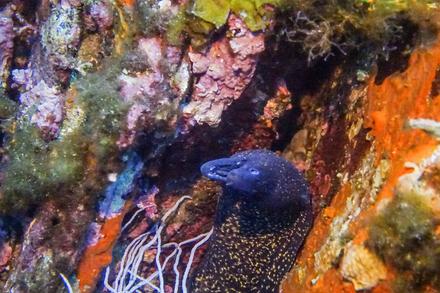 Il s’agit d’une très belle plongée, à l’ouest de l’île de Porquerolles où l’on se promène entre les roches qui se dressent et les failles d’un relief animé entre une quinzaine et une trentaine de mètres. La densité de poissons et la richesse en gorgones en font une plongée très photogénique. On rencontre des mérous, des murènes, des langoustes, des gobies et toutes sortes de poissons colorés. Il est fréquent d’apercevoir un banc de barracudas.