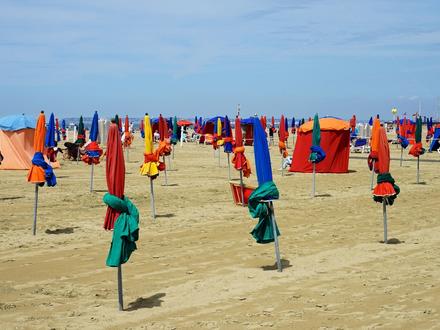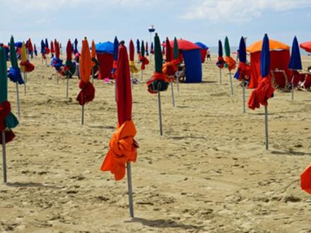 Sa voisine, Deauville peut également s’enorgueillir d’une plage mythique symbolisée par ses parasols, sa Promenade des Planches et ses cabines signées des noms d’acteurs américains. De nombreux peintres, comme Dufy ont représenté cette plage et ses ciels changeants. Casino, golf, hippodrome, festivals, boutiques de luxe et hôtels prestigieux, rien ne manque pour la détente et le plaisir de nombreux promeneurs et touristes. En hiver, à marée basse les mouettes, aigrettes et goélands règnent en maîtres sur ces magnifiques plages de sable fin.