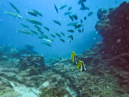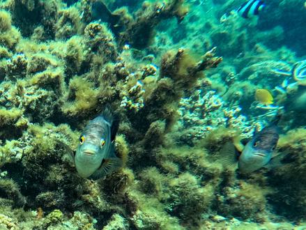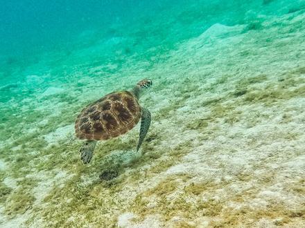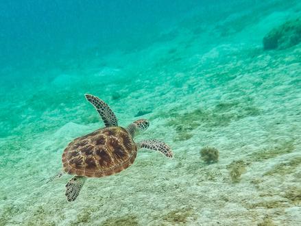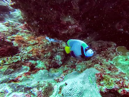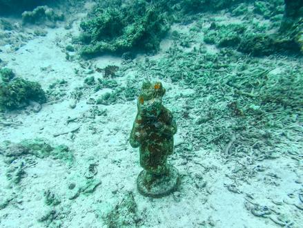 Plongée de toute beauté en PMT* autour de statues indiennes immergées pour les cérémonies, et comme le COVID a permis à la nature de se régénérer en deux ans sans touristes, les tortues peu farouches sont de la partie.